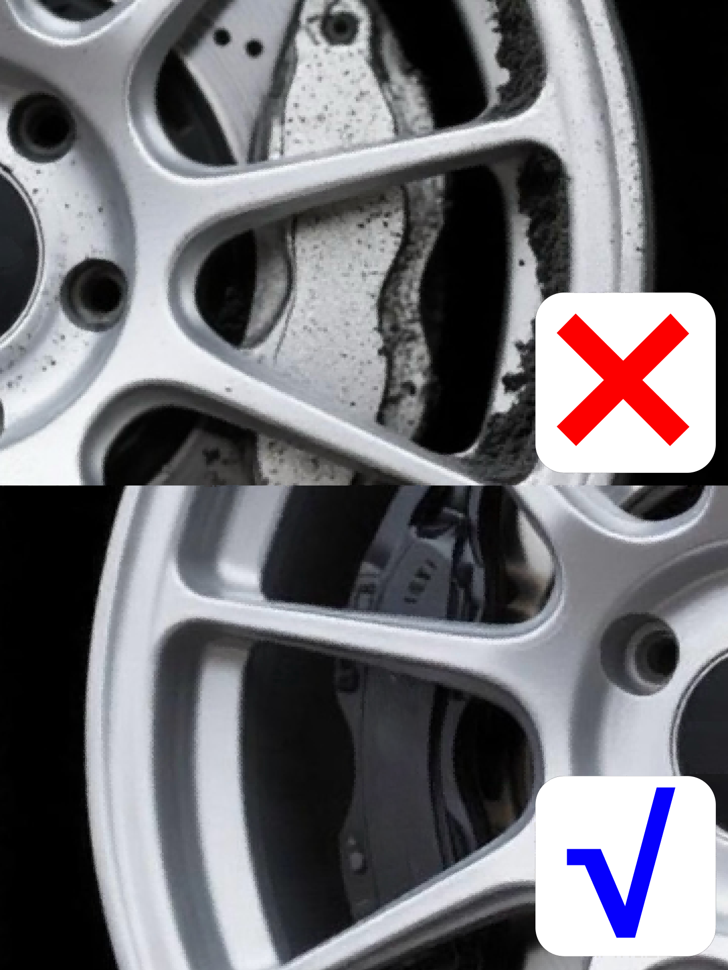 Тормозная жидкость, очистители, влажная среда или противогололёдные реагенты зимой — всё это влияет на металлическую пыль ещё до того, как вы попытаетесь её очистить, и из-за этого очистить её становится очень сложно. Со временем вы можете заметить множество мелкой металлической пыли и ржавых пятен на поверхности ступицы.